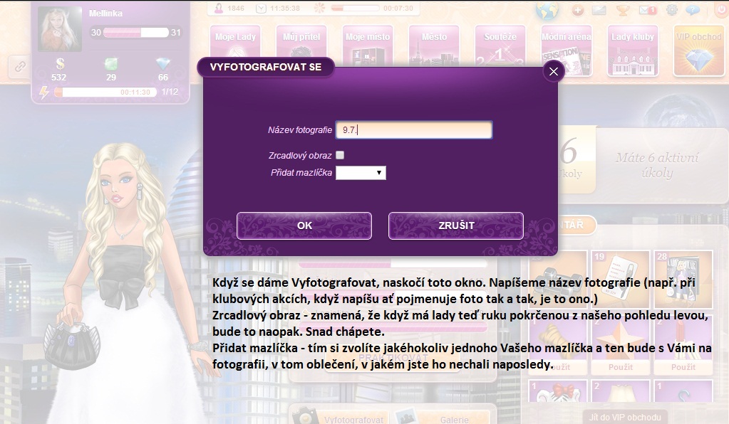 Nejdříve se samozřejmě oblékneme do toho, v čem se chceme vyfotit. Poté klikneme na Moje lady a Vyfotografovat.