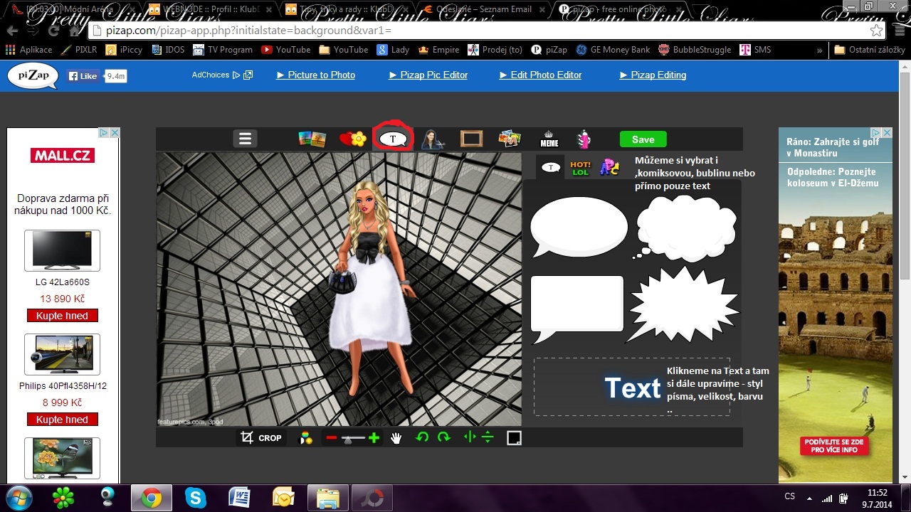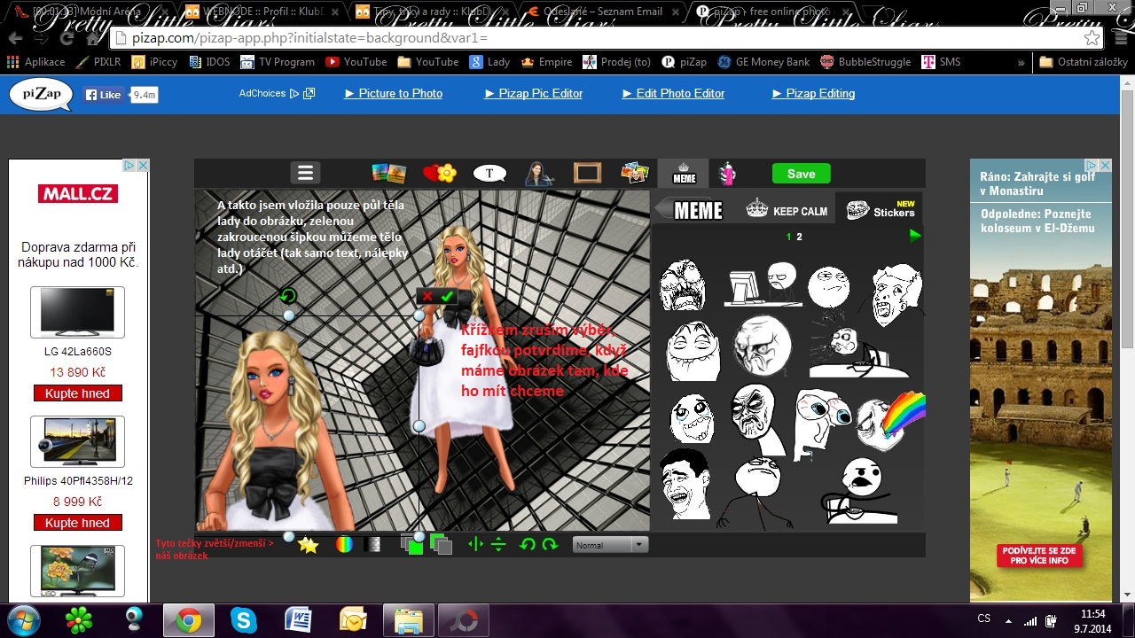 Krok č.10 EFEKTY,NÁLEPKY ATD.: (Lady můžeme různě otáčet, přesouvat .. viz. krok č.15 )